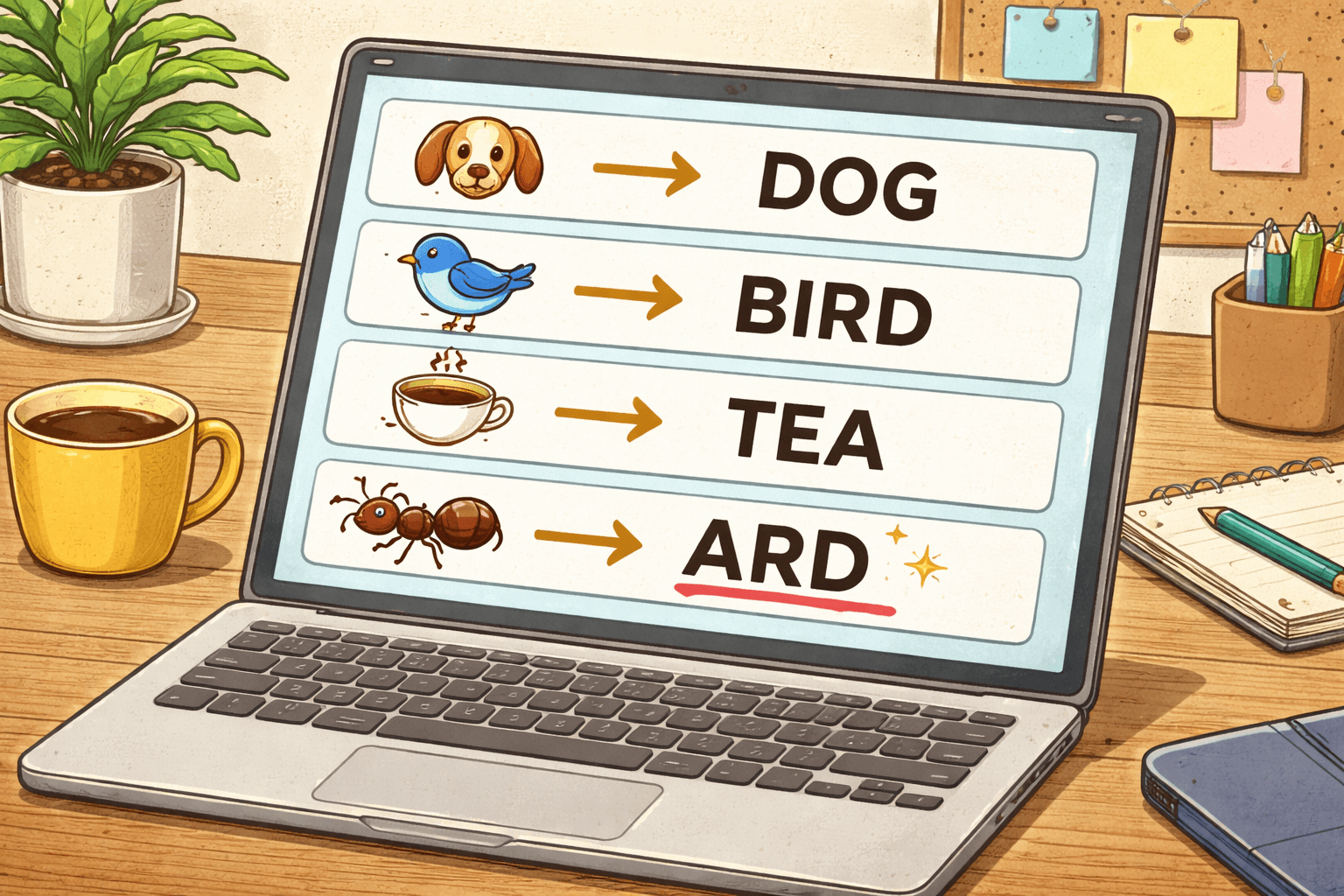 犬、鳥、茶の場合は、そのまま英語になっているように見えますが、蟻の「ARD」は違いますね。