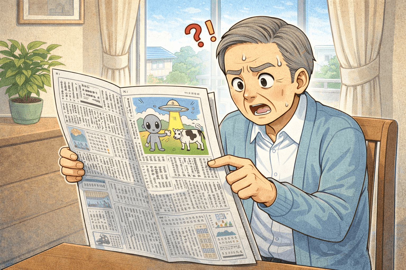 おじいちゃんが朝刊を見ていると、一部漢字が上下逆に書かれているのを見つけました。よく見てみると、昨日の新聞も翌日の新聞も、同様の箇所があります。