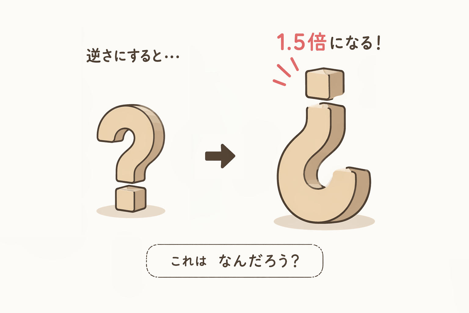 今日は体育の時間に逆立ちの練習をしました。普通は逆立ちをしても身長が伸び縮みしたりはしませんが、逆立ちすると1.5倍の大きさになってしまうモノがあるようです。